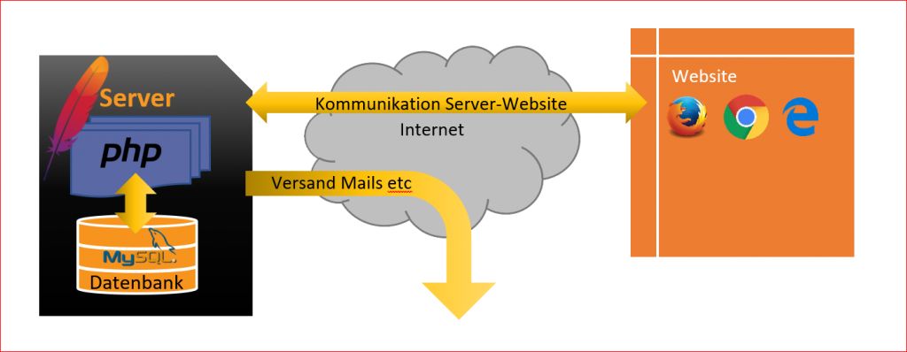 PHP ist eine Programmiersprache für Programme bzw. Scripte die auf dem Server ausgeführt werden, um dynamische Inhalte für Webseiten, Webanwendungen oder Apps auszugeben. So ist die Software für diese Seite auch in PHP geschrieben. Dabei arbeitet PHP meist mit einer Datenbank zusammen, in diesem Fall ist das eine MySQL Datenbank.